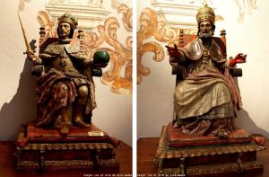 La Iglesia es única en Sevilla, mientras en el resto prima el retablo y la talla, aquí vemos una capilla conde prima el fresco y la pintura sobre otras artes. Está consagrada a San Pedro y San Fernando. Los frescos de paredes y cubierta recrean escenas en espacios ilusorios, marcando la teatralidad del barroco a base de trampantojos que engañan a los visitantes. El diseño de las obras fue debido a Juan de Valdés Leal, siendo su hijo Lucas Valdés el artífice de su realización.
